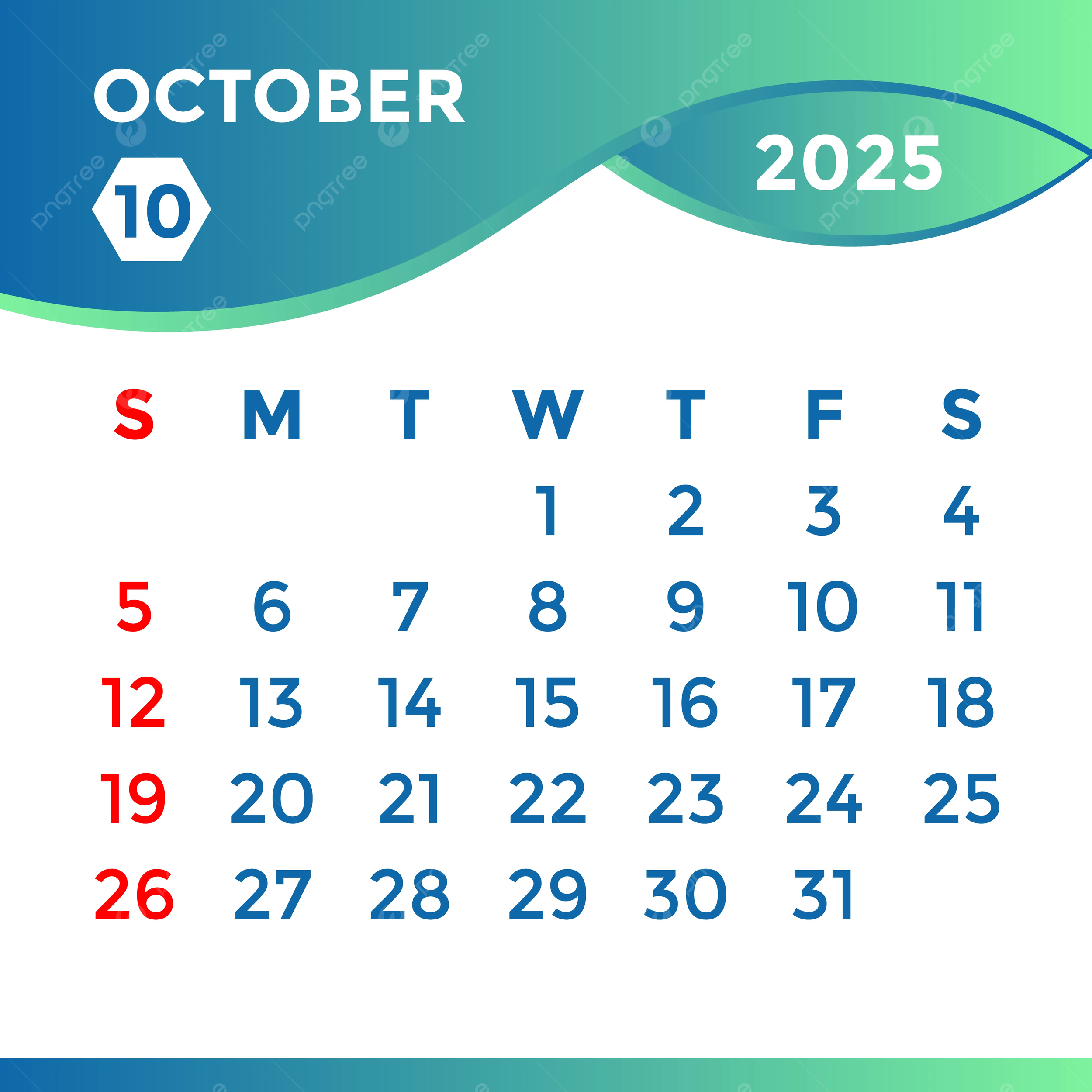 2025 Calendar Month Of October Vector Template Download On Pngtree