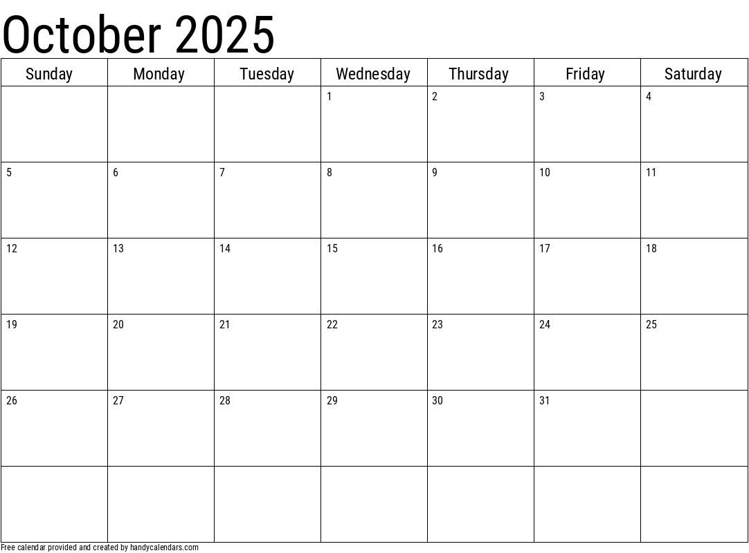 October 2025 Calendar Free Printable PDF XLS And PNG