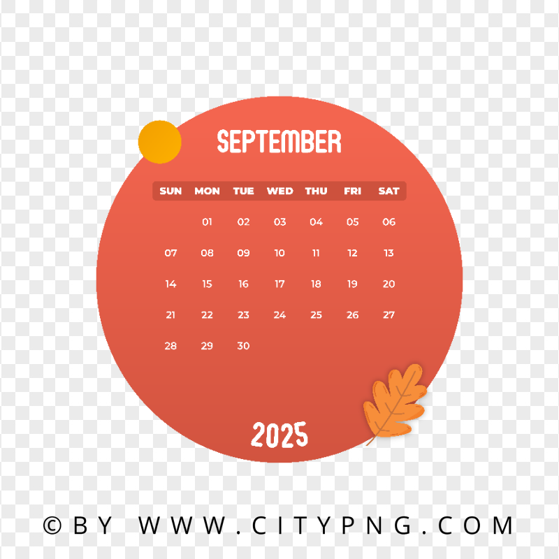 September 2025 Vector Monthly Calendar Citypng