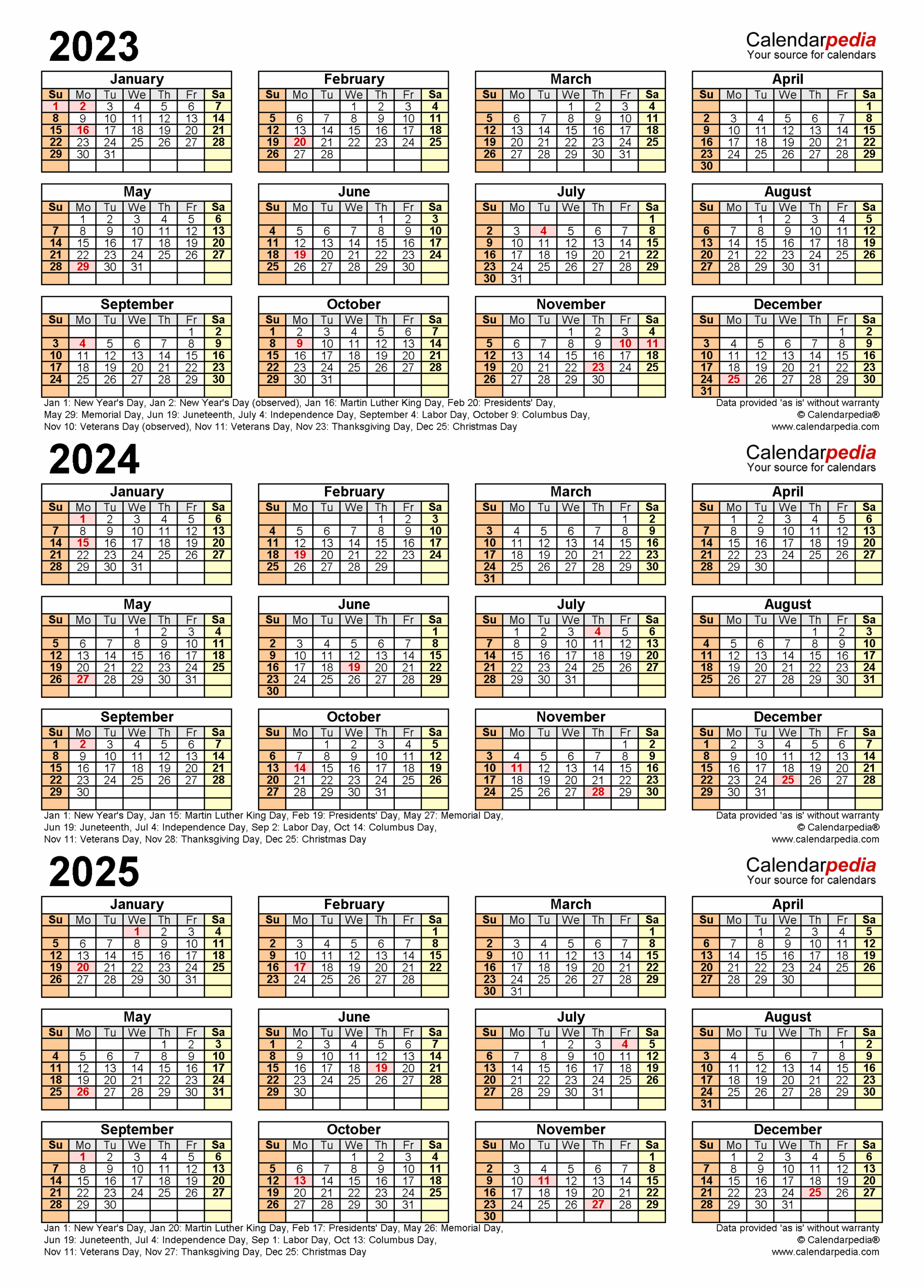 2023 2025 Three Year Calendar Free Printable PDF Templates