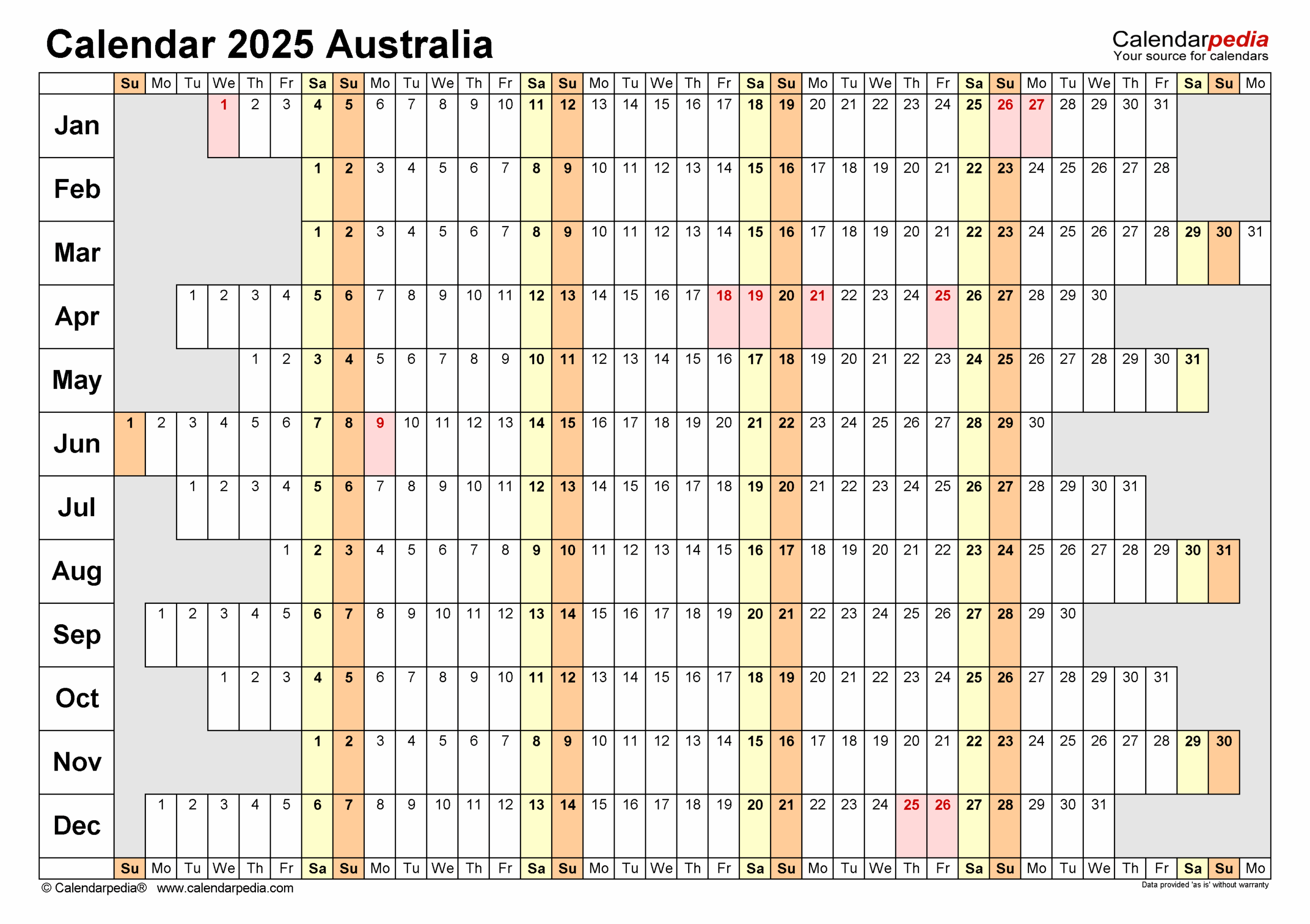 Australia Calendar 2025 Free Printable PDF Templates