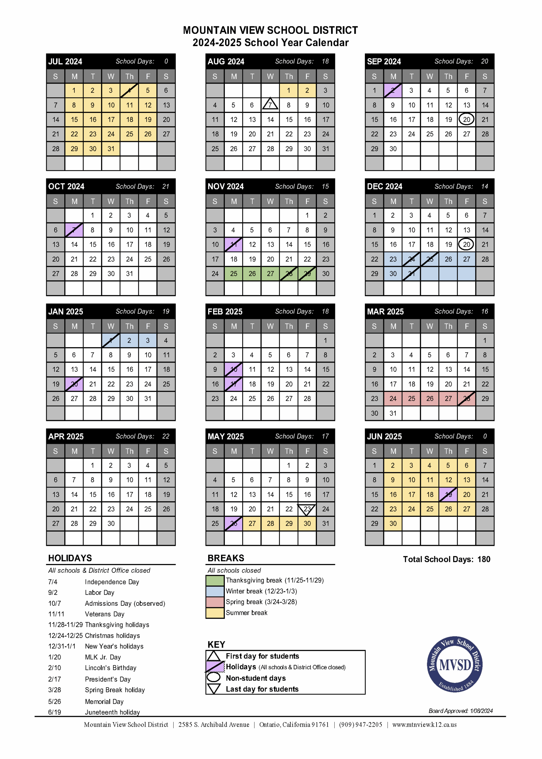 2024 2025 School Year Calendar Summit View Elementary