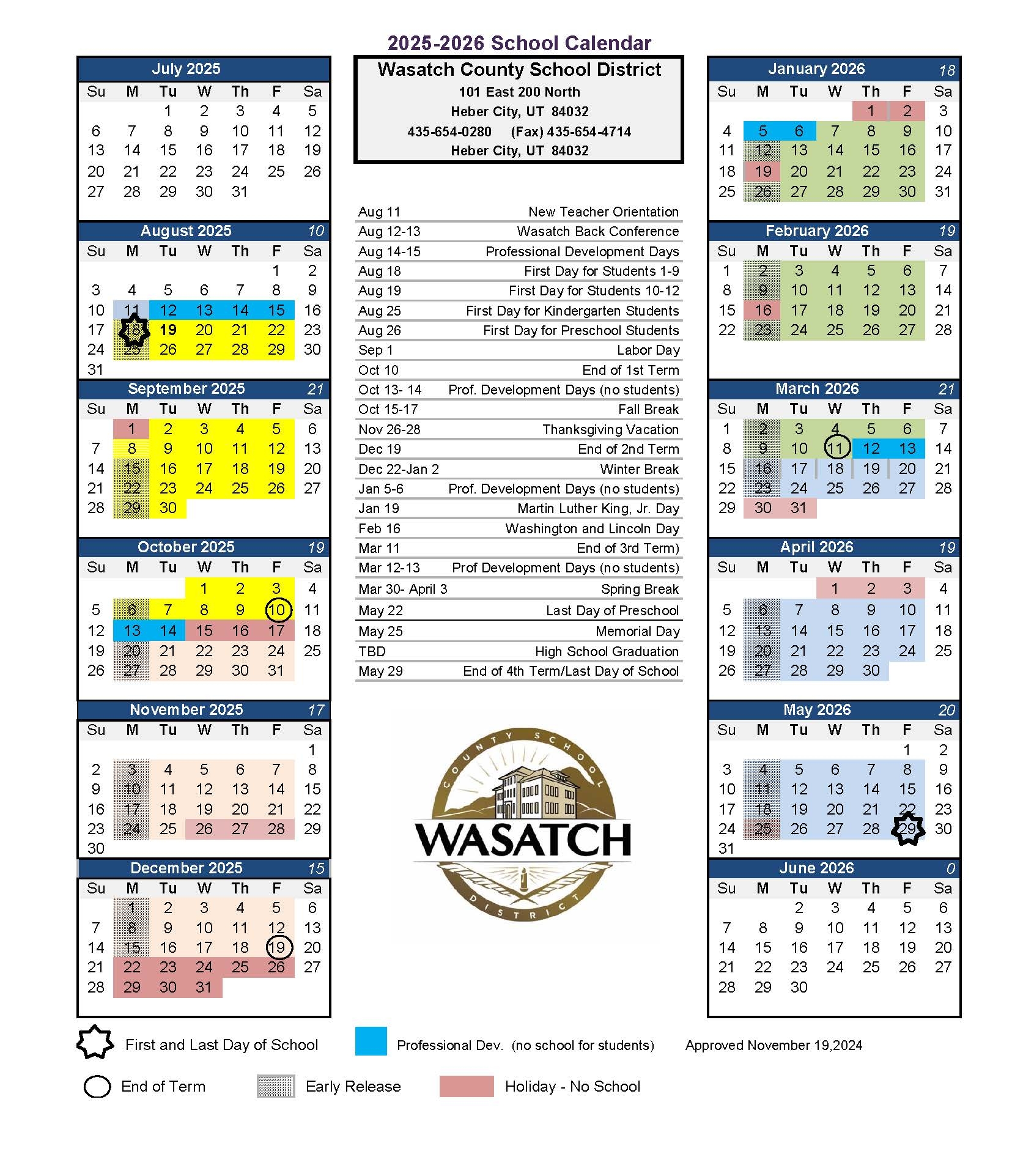 Calendar Wasatch County School District