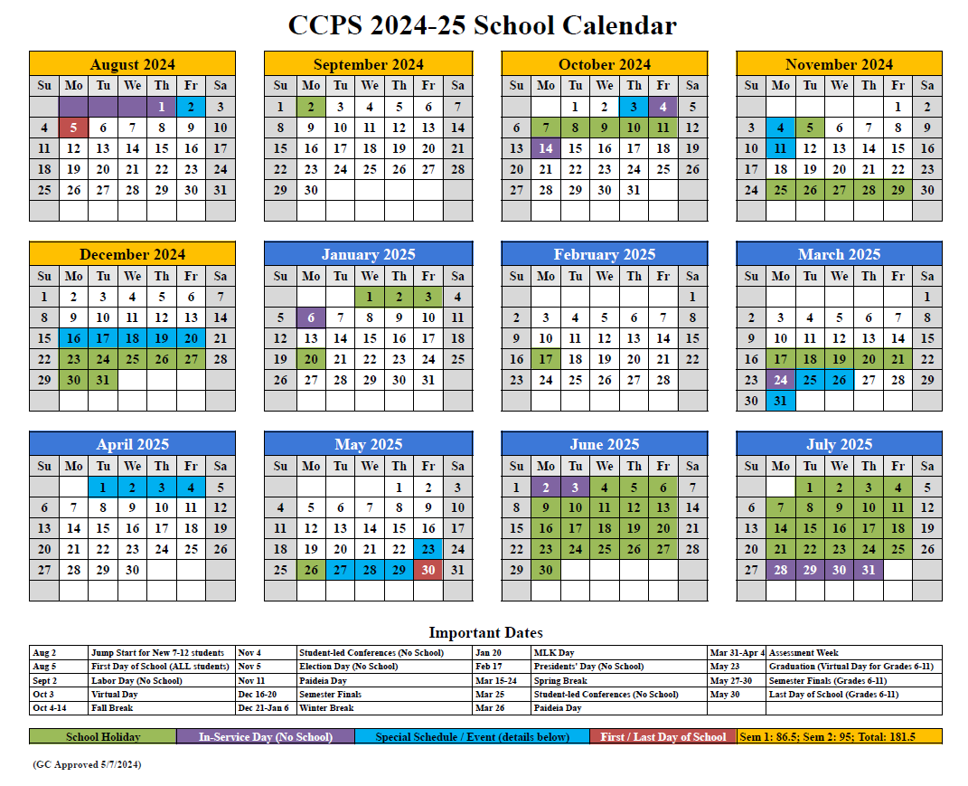 School Calendar Cottonwood Classical Preparatory School