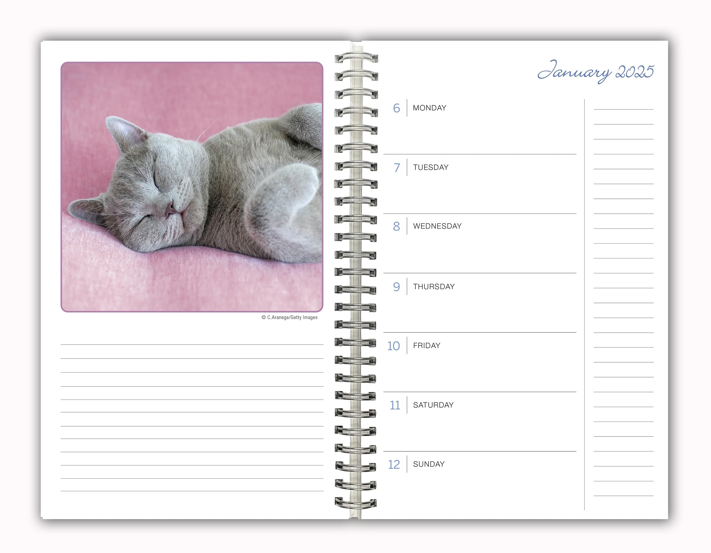Featuring charming illustrations of cats in different poses and settings, this calendar is sure to bring a smile to your face every time you check your schedule. From playful kittens to regal tabbies, each cat is lovingly depicted to add a touch of whimsy to your daily planning.