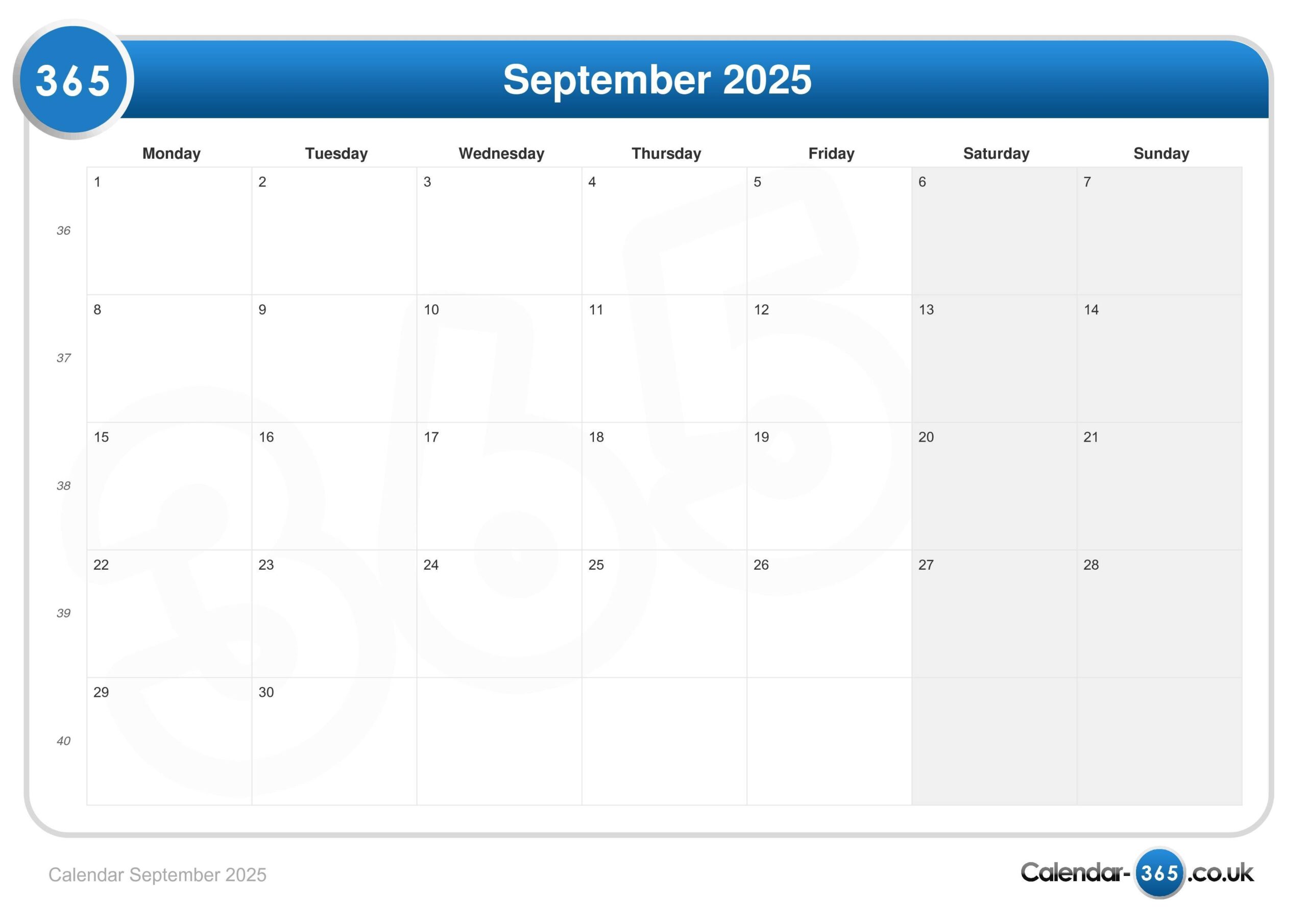 Calendar September 2025 UK With PDF Excel And Word Templates