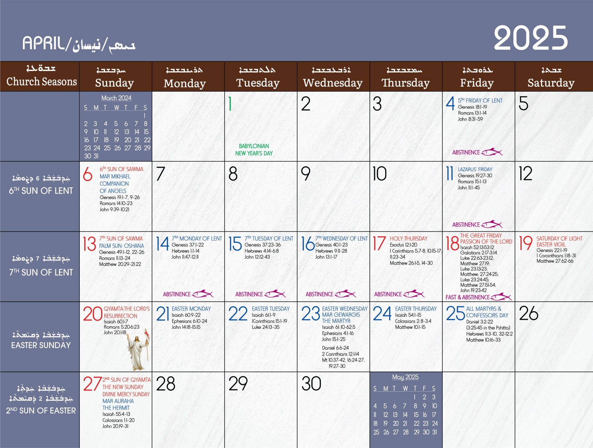 Liturgical Calendar Chaldean Diocese Of St Thomas The Apostle U S A