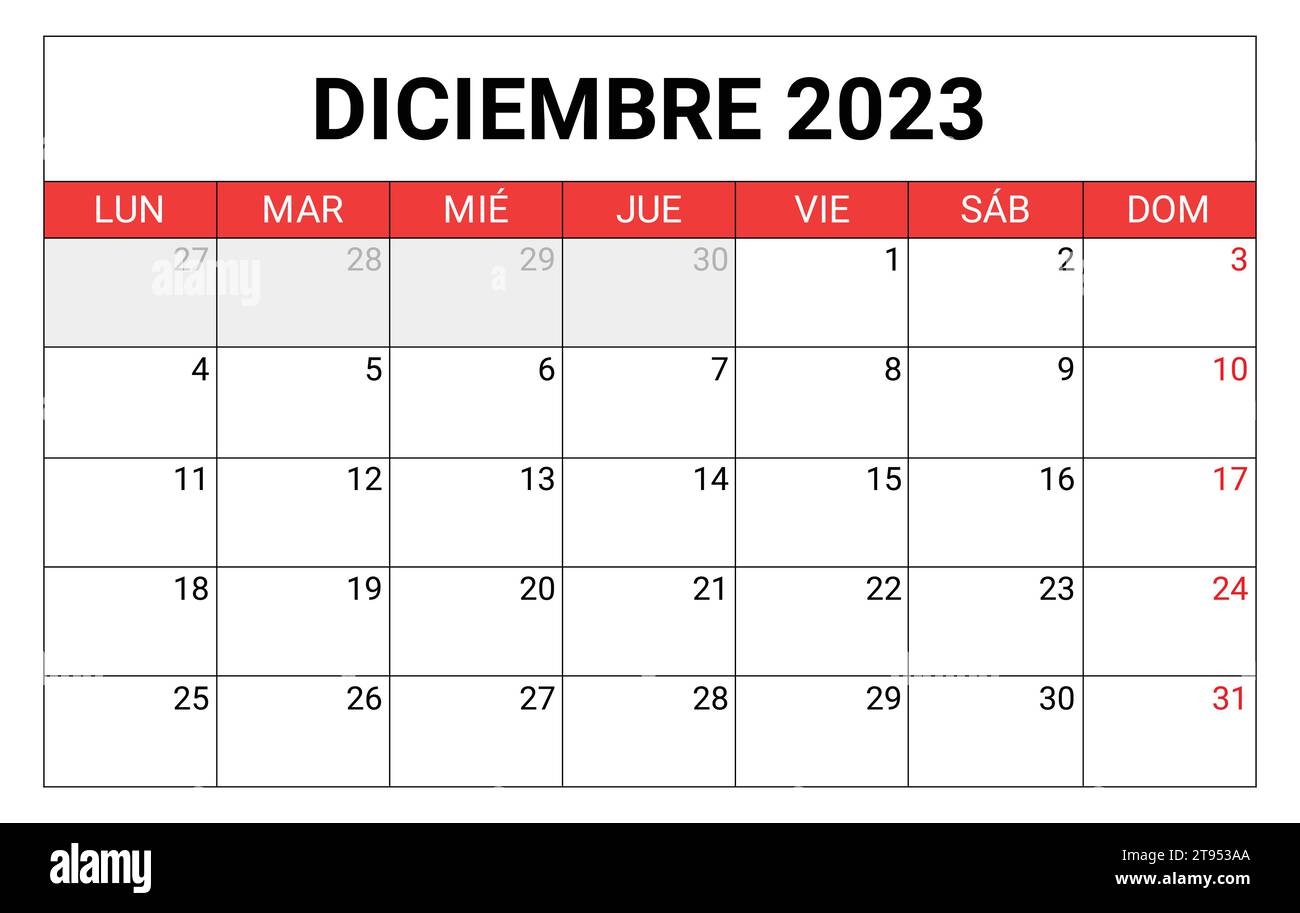 2025 December Monthly Spanish Calendar Vector 2025 December Monthly Spanish Calendar 2025 December Calendar PNG And Vector With Transparent Background For Free Download