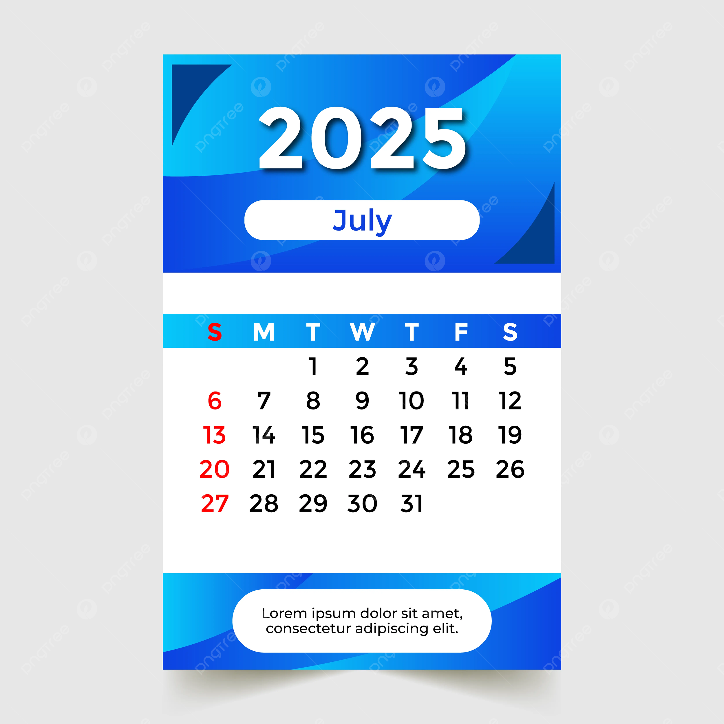 July 2025 Calendar Skyblue Vector Template Download On Pngtree