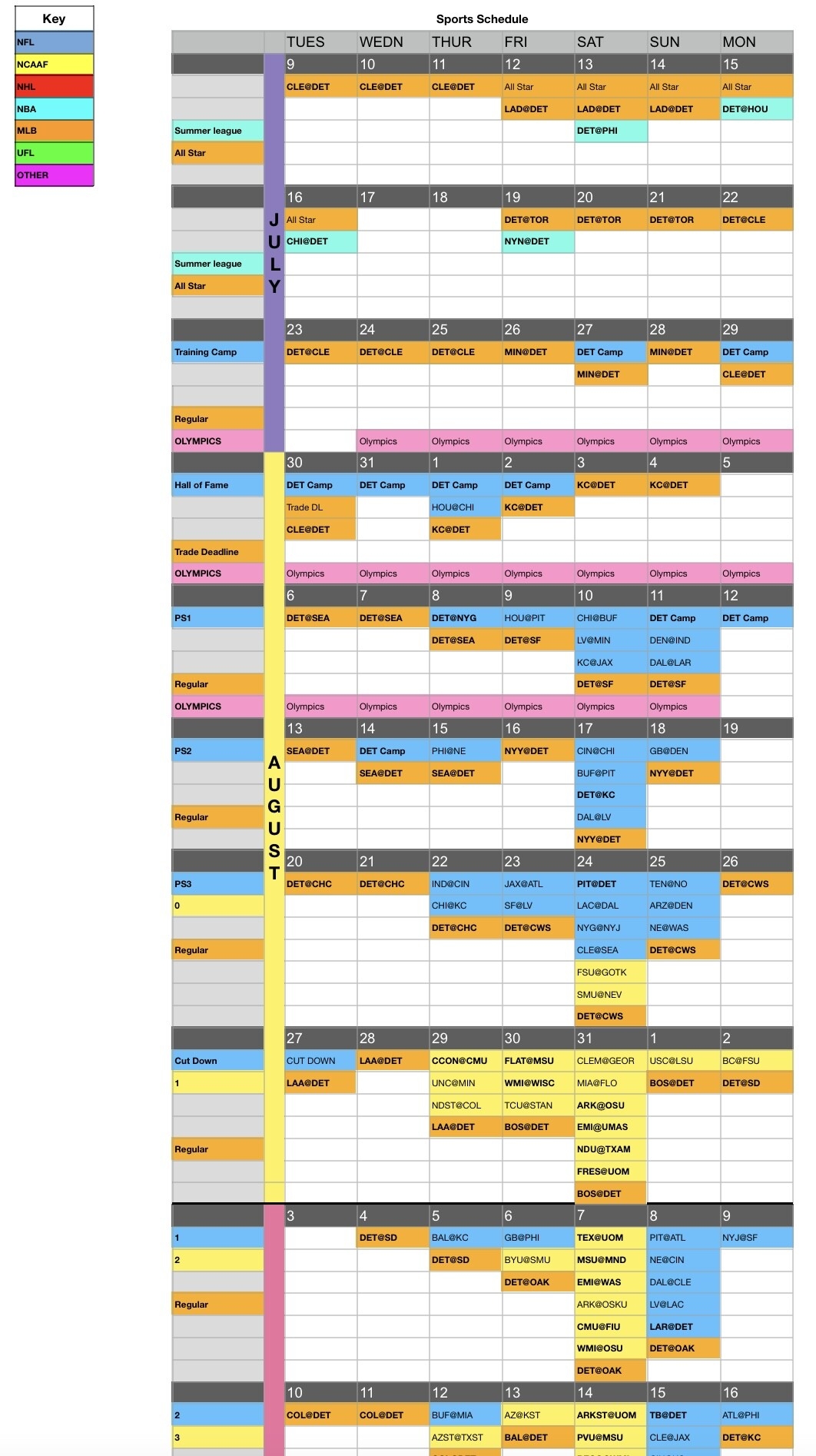 Sporting Calendar July 2025