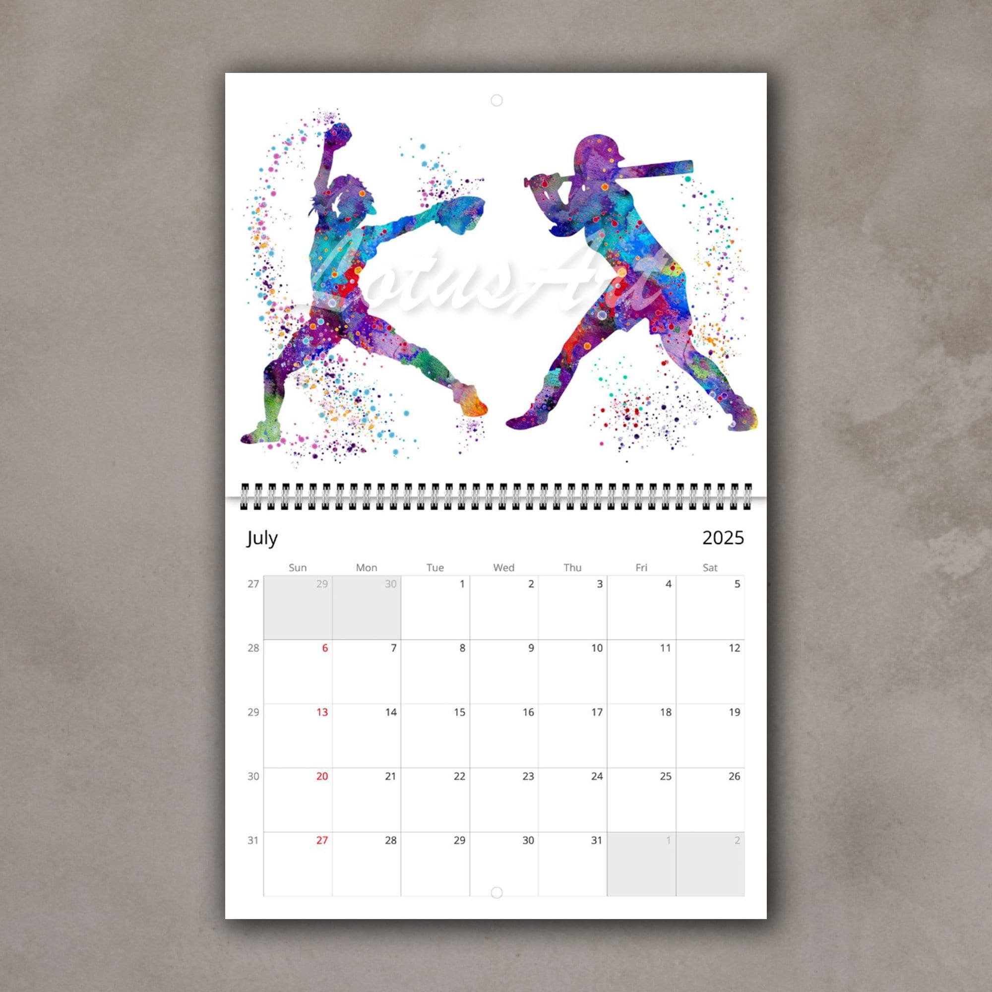 2025 Calendar Sports Watercolor Print Office Gift Kids Room Decor