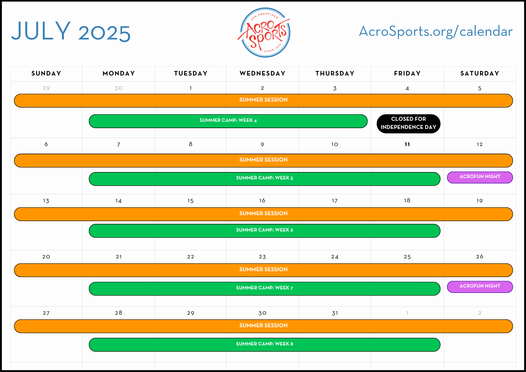 AcroSports Calendar AcroSports