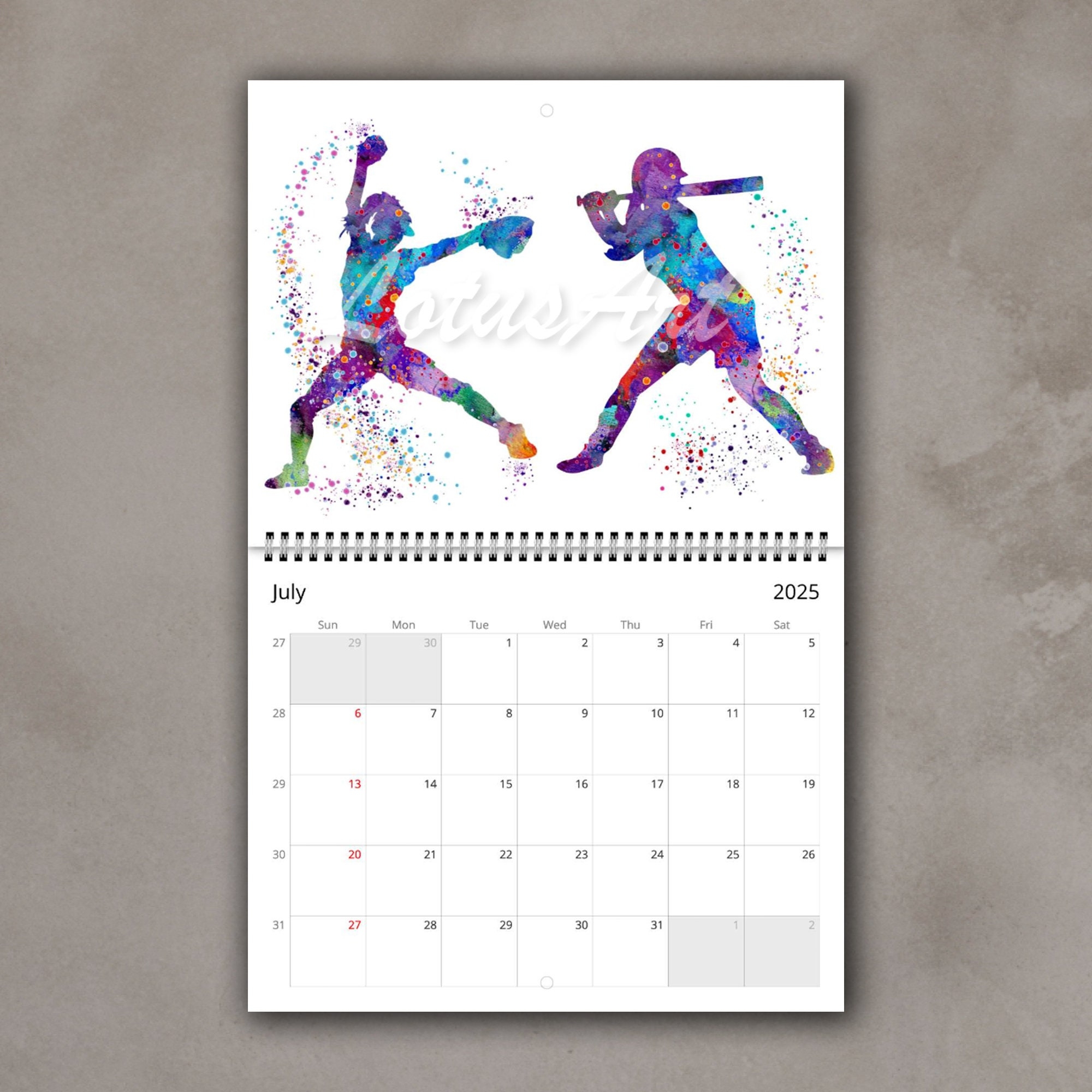 2025 Calendar Sports Watercolor Print Office Gift Kids Room Decor 12 Month Wall Calendar Etsy