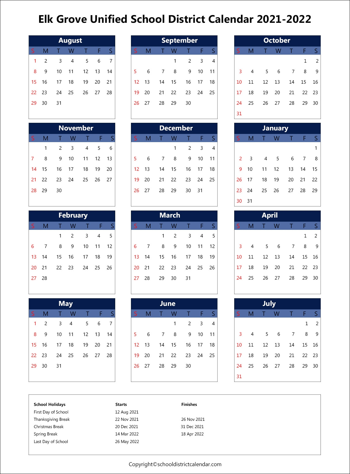 Elk Grove Unified Calendar Customizable Calendar Ideas