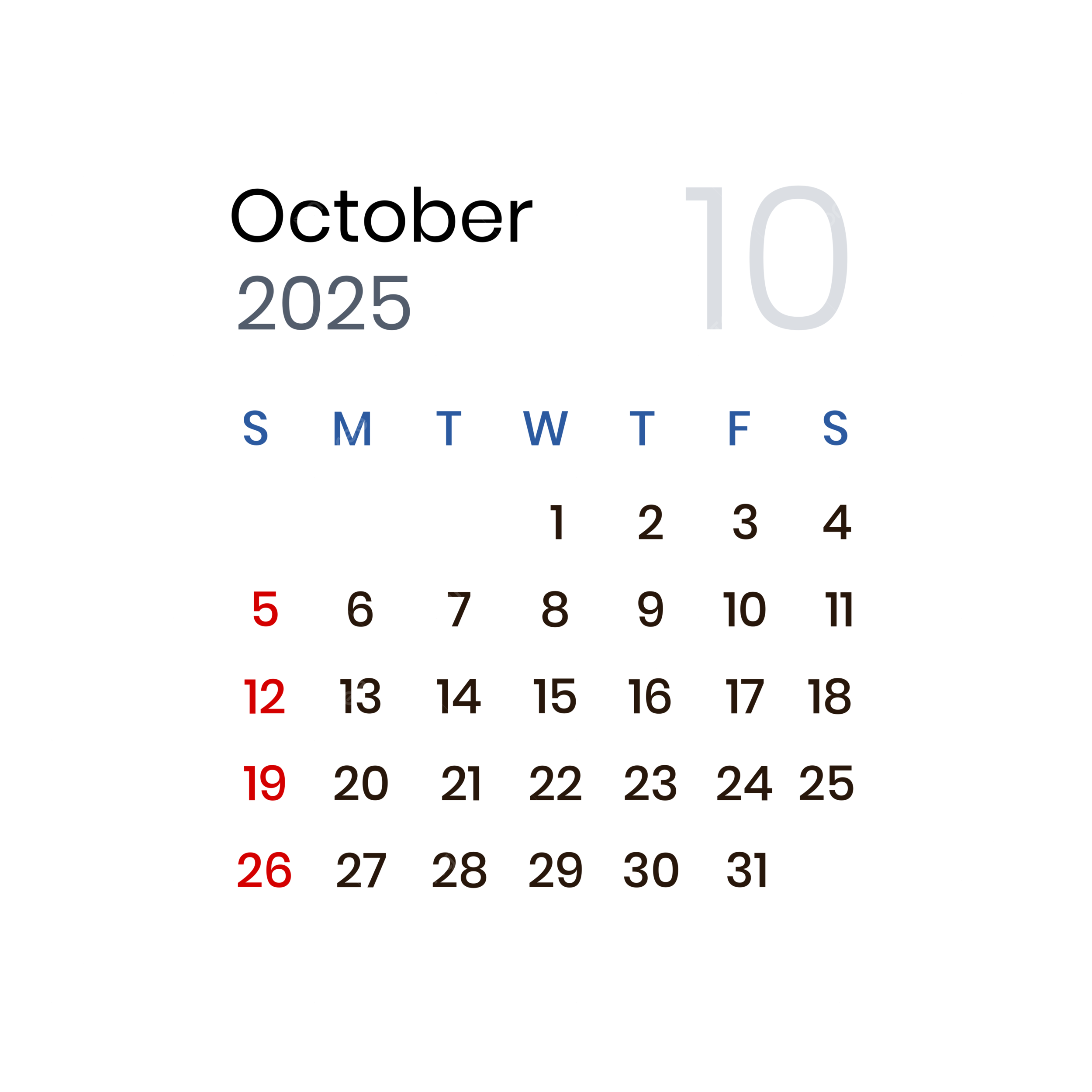 With a clear and simple layout, our transparent October 2025 calendar is easy to read and use. Say goodbye to cluttered calendars and hello to a streamlined way of organizing your month. Keep track of everything that matters to you in one convenient place.