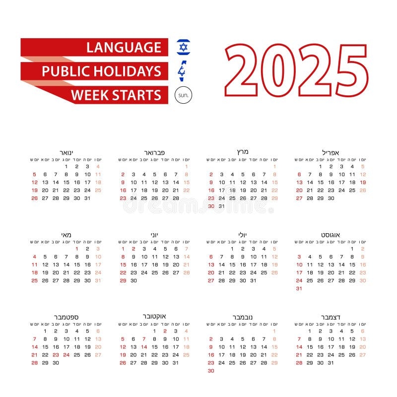 Calendar 2025 In Hebrew Language Week Starts On Monday Vector